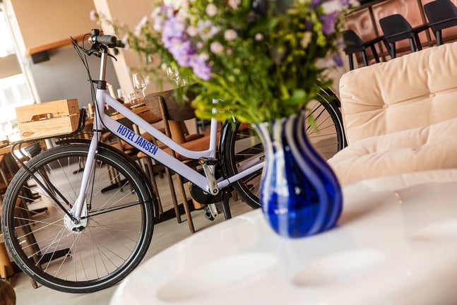 At the bar we pour you a drink, share ideas, and listen to your wishes. For each bike part you can choose your favorite color, from olive green to shiny gold. You can add catchy icons to the bike too. It's a place where you can freely interact with our designers to create the most wonderful bike together. A fun bike, an elegant bike or a bike with a significant message. As long as it is yours and you can proudly say: "This is MyHotelBike!"